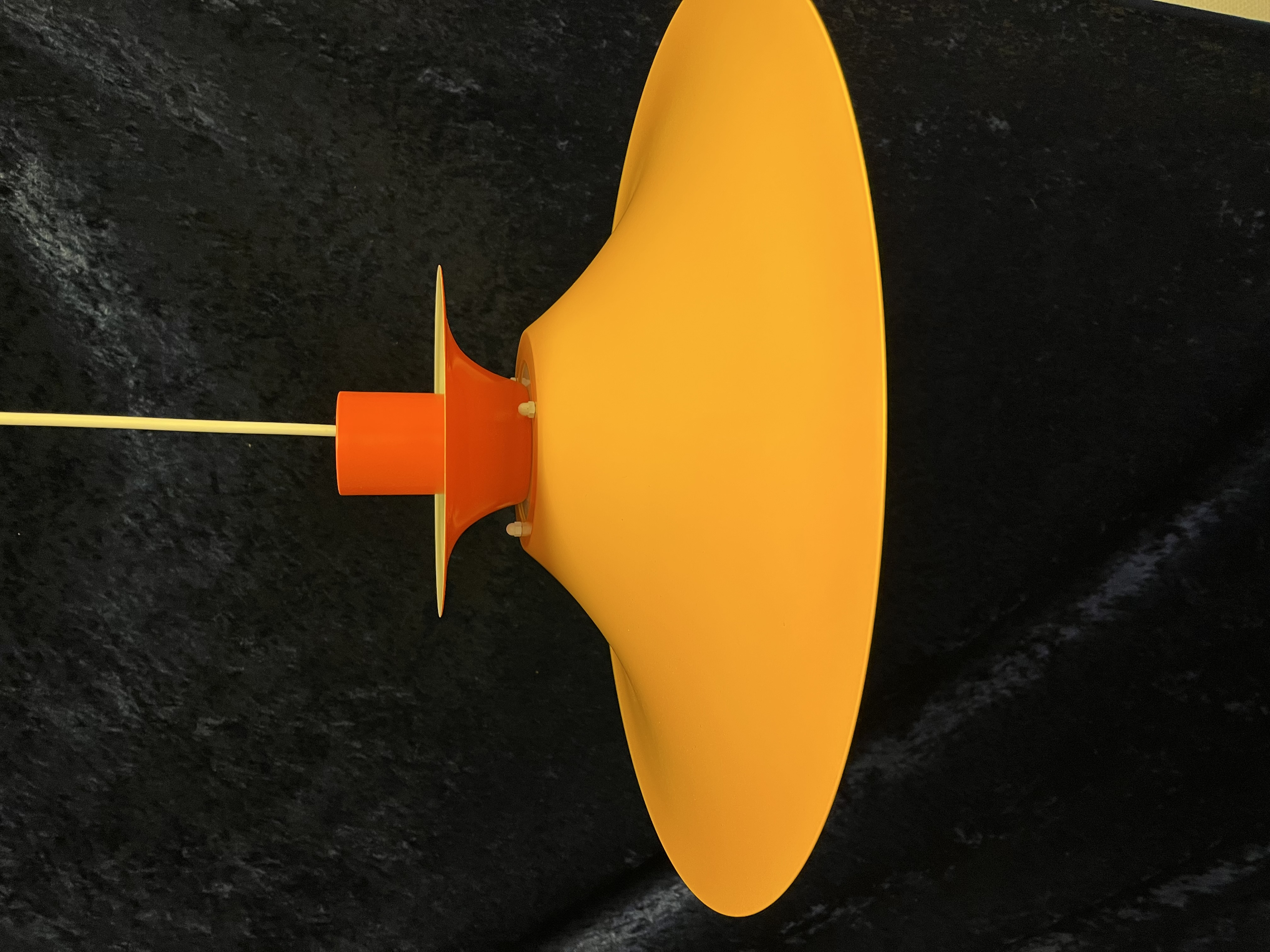 Pendler 4728. Stor Lyskær pendel i fede farver. by Retro og design • 26. september 2025 Stor 48 cm RETRO pendel i orange og gule nuancer. Kr. 1200,-