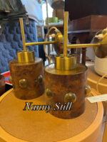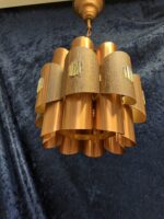 Et par Væglamper i syrebehandlet kobber på ravfarvet kraftigt glas. Design: Nanny Still.