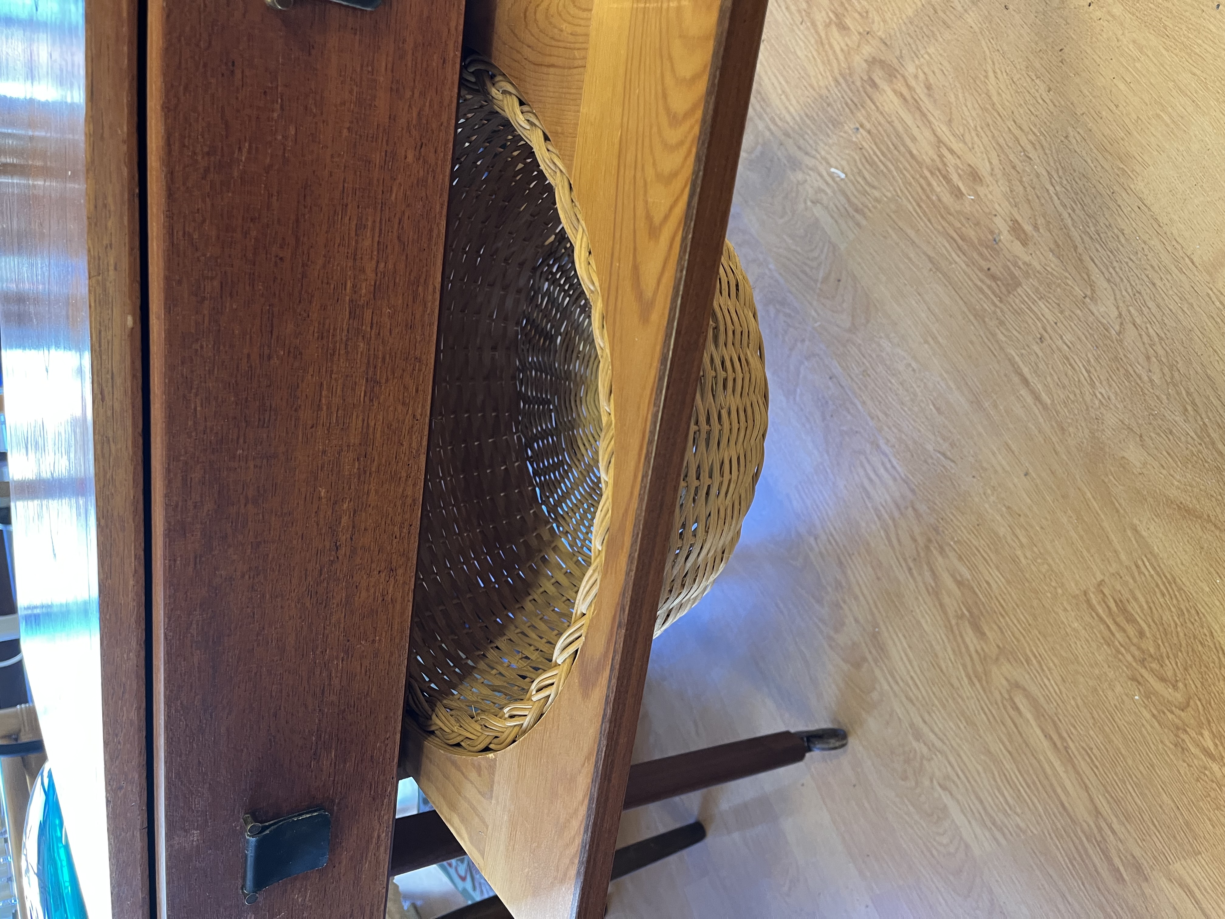 Borde, Småmøbler 4737. Sybord i teaktræ 1960 erne. by Retro og design • 21. oktober 2025 Sybord i teaktræ 1960erne med ruminddelt skuffe og garnkurv. Kr. 1200,-